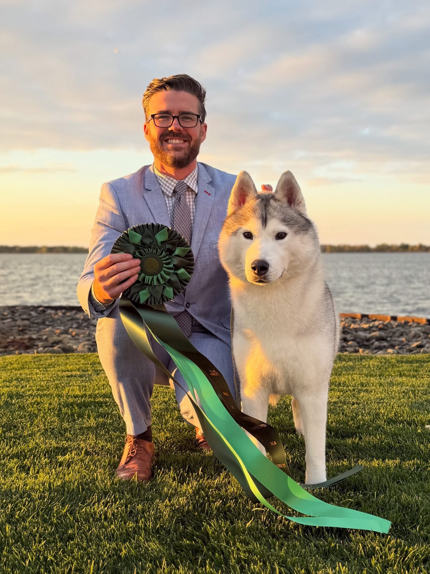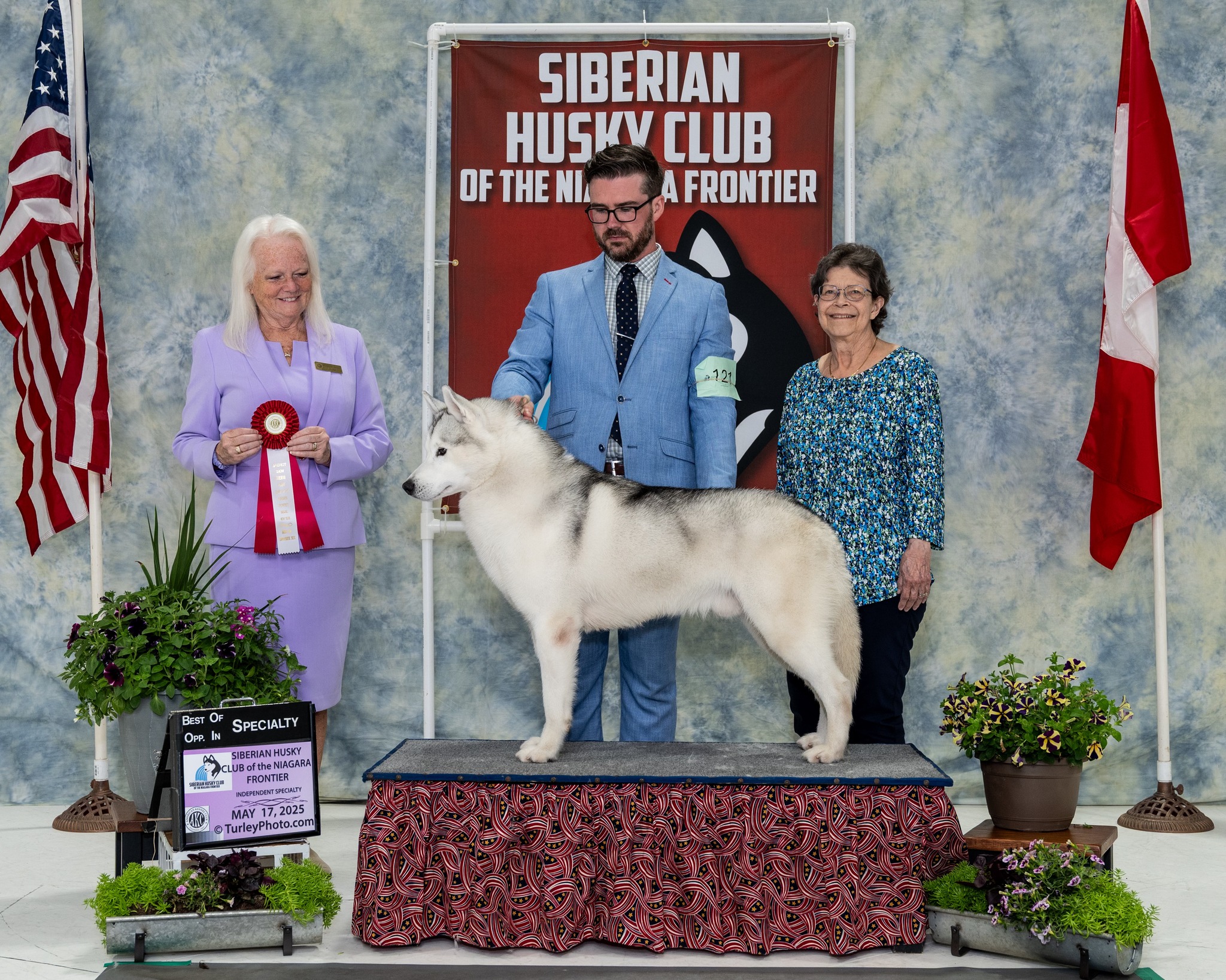 Stevie and his top-winning littermates descend from five generations of Highlander Siberians honored by the SHCA as Top Producers. He came to live with us for the summer to show on the East Coast in 2023 and has become an integral part of our kennel. With his favorite person in the world, Nate, he has won multi Best in Specialty Shows, Owner Handler Best in Shows, and Group Placements in the US and finished his Canadian Championship. In 2023 he was the number 5 Siberian Husky (breed) in the country. Stevie runs in wheel or team on our dog sled team in the winter. Thank you so much to Anita Riley, Anne Palmer and Brian Palmer for allowing Stevie to be a part of our pack.